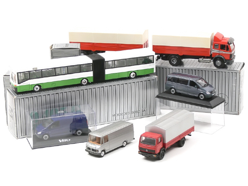 DIVERS (ALLEMAGNE) Ensemble de 3 utilitaires, 2 camions & un autobus de la marque MERCEDES