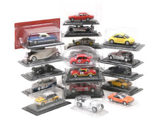 miniatures reproduisant les modèles : PEUGEOT, CITROEN, PORSCHE, LANCIA, FORD, FIAT, BUGATTI, ASTON MARTIN, AUDI, VOLKSWAGEN, RENAULT, MG, MERCEDES, SUBARU, COOPER CLIMAX, MATRA SIMCA, AUSTIN HEALEY, NISSAN, HOLDEN, FIAT ABARTH, MORGAN & WILLIAMS - on y retrouve notamment les marques ATLAS & DEL PRADO