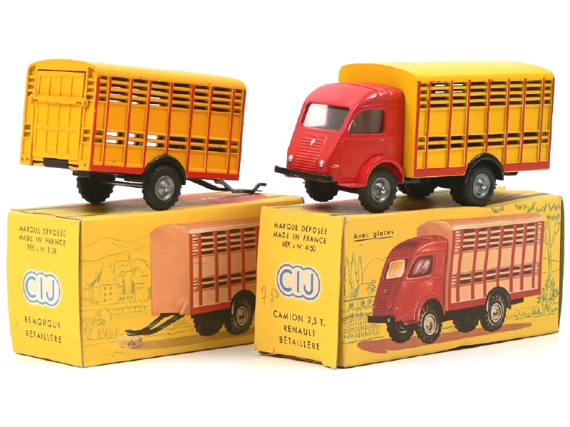 C.I.J. (FRANCE) 3/28 Remorque-bétaillère jaune d'or & rouge