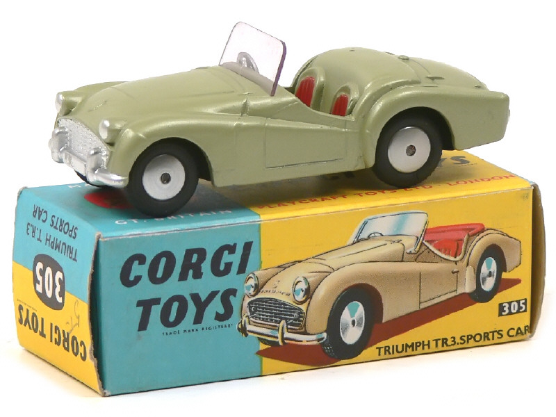 CORGI TOYS (GB) 305 TRIUMPH TR3 vert tilleul métal, sièges tomate