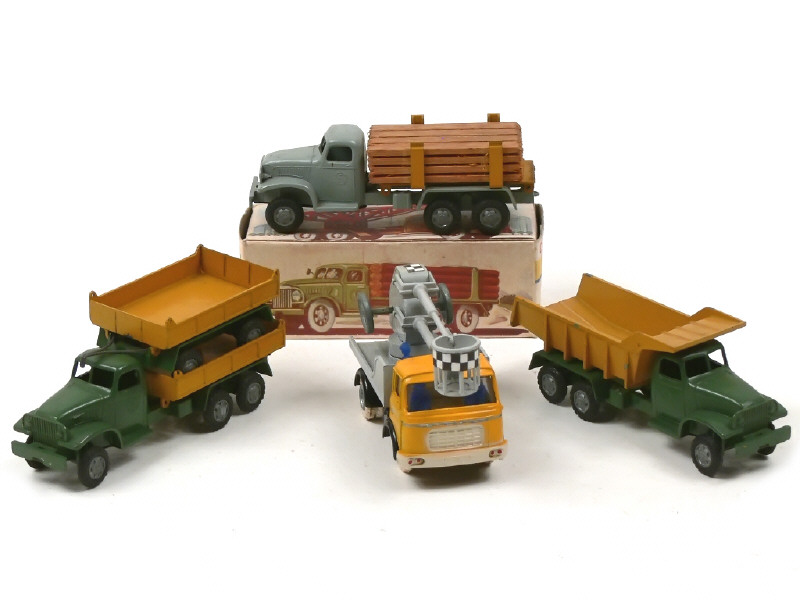 états de 'B' à 'C' - comprend : GMC forestier, GMC plateau à ridelles basses avec remorque, GMC benne de chantier & BERLIET GAK plateau avec nacelle (système d'élévation à revoir) - un modèle avec boîte
