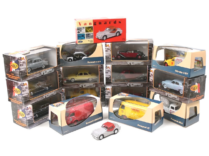 miniatures reproduisant les modèles : RENAULT, PEUGEOT, CITROEN, SIMCA, PANHARD & TRIUMPH - on y retrouve les marques : NOSTALGIE, ATLAS & VANGUARD