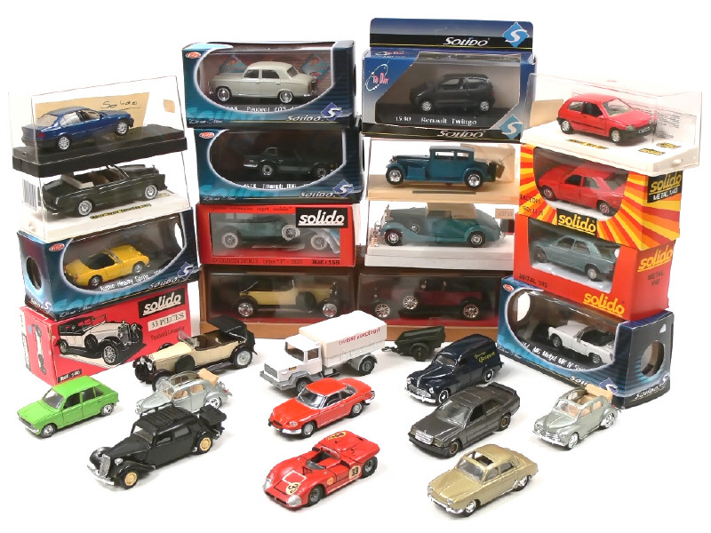 SOLIDO (FRANCE) Ensemble de 26 voitures, un camion & une remorque