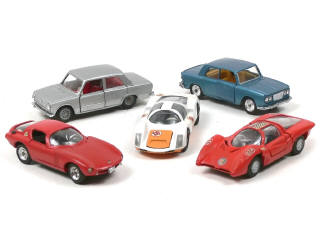états de 'A' à 'C' - miniatures reproduisant les modèles : LANCIA, FIAT, PORSCHE & ALFA ROMEO - taches d'humidité sur un volant & une roue de secours - 2 portières en métal fatigue sur un autre modèle