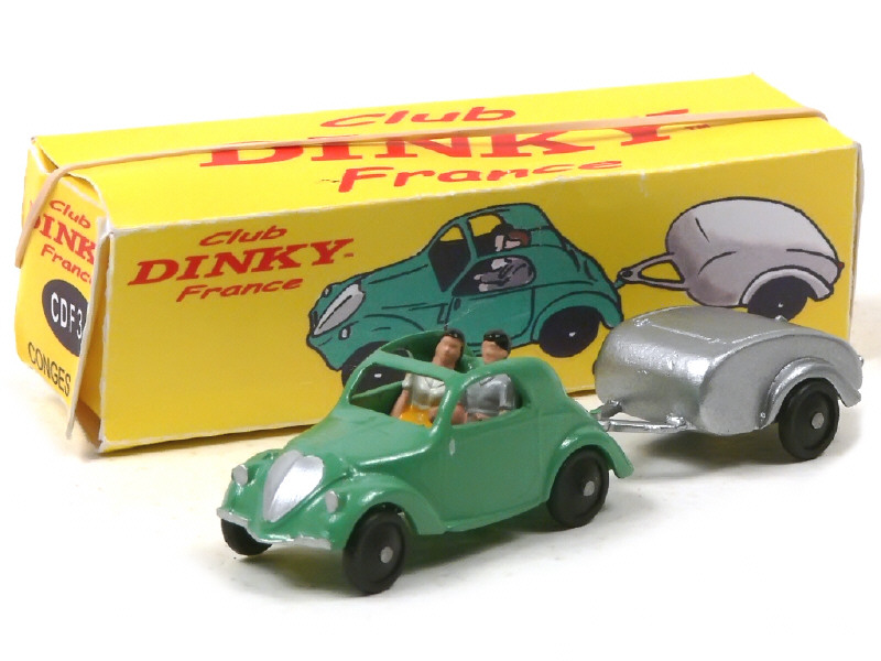 CLUB DINKY FRANCE CDF 34 SIMCA 5 avec remorque 'CONGES PAYES' vert amande soutenu & gris métal