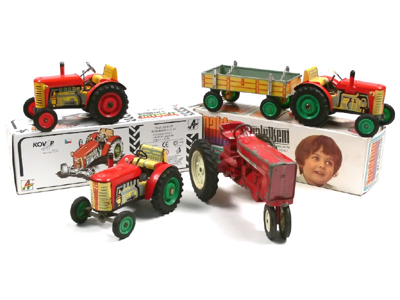 KDN (TCHECOSLOVAQUIE) ZETOR Tracteur agricole avec remorque-plateau à ridelles rouge & jaune