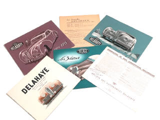 DELAHAYE (FRANCE) Ensemble d'un catalogue & 5 affichettes automobiles