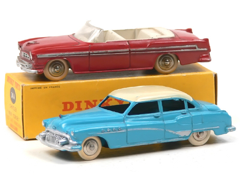 DINKY TOYS (FRANCE) 24V BUICK ROADMASTER (version avec intérieur de toit quadrillé & jantes chromées) bleu, toit crème