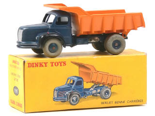 DINKY TOYS (FRANCE) 34A BERLIET Benne carrière MARREL (version avec jantes convexes) bleu foncé & orange