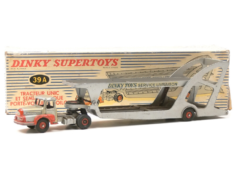 DINKY TOYS (FRANCE) 39A UNIC Porte-voitures 'BOILOT' gris métal & orange