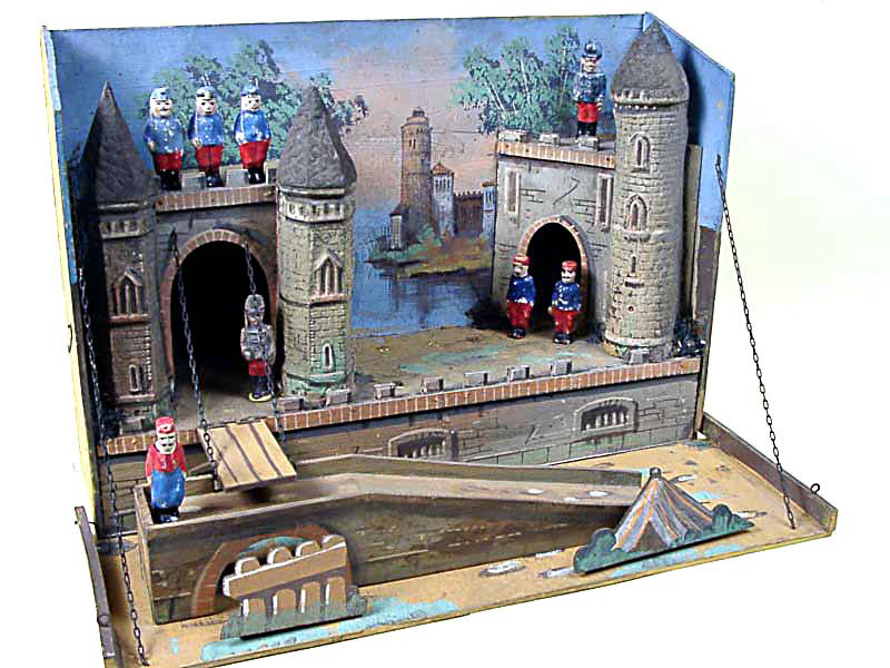 dimensions déplié : 58 x 33 x 38 cm - en bois peint & carton bouilli - fabrication vers 1890 - on y joint 8 figurines en composition - SUPERBE !