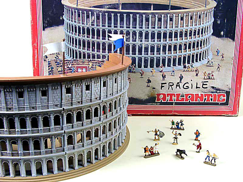 dimension : 52 x 42 x 17 cm - échelle 1/72 ème - on y joint une soixantaine de figurines (gladiateurs, chrétiens livrés aux lions, etc)