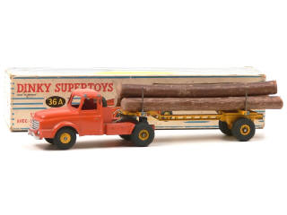 DINKY TOYS (FRANCE) 36A WILLEME Fardier (version avec jantes convexes & remorque ajourée) orange & jaune