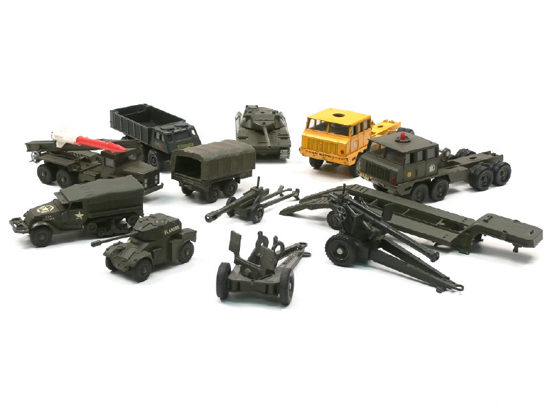 états de 'B' à 'D' - miniatures reproduisant les modèles : AMX, HALF TRACK, PANHARD, UNIC & BERLIET (3 exemplaires) - quelques jantes fondues - petites transformations - avec manques