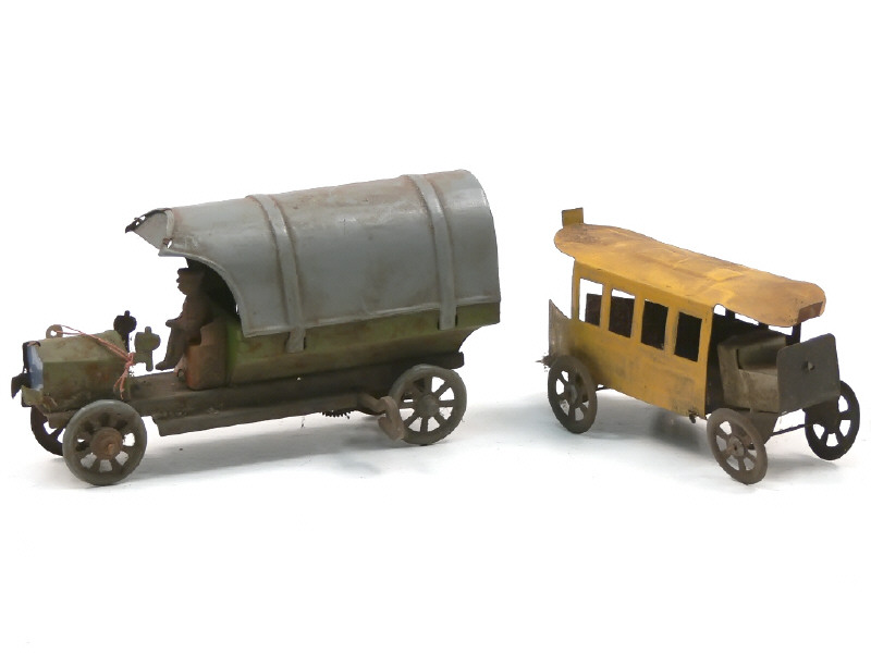 DIVERS Ensemble de 2 véhicules en tôle peinte du début du 20ème siècle