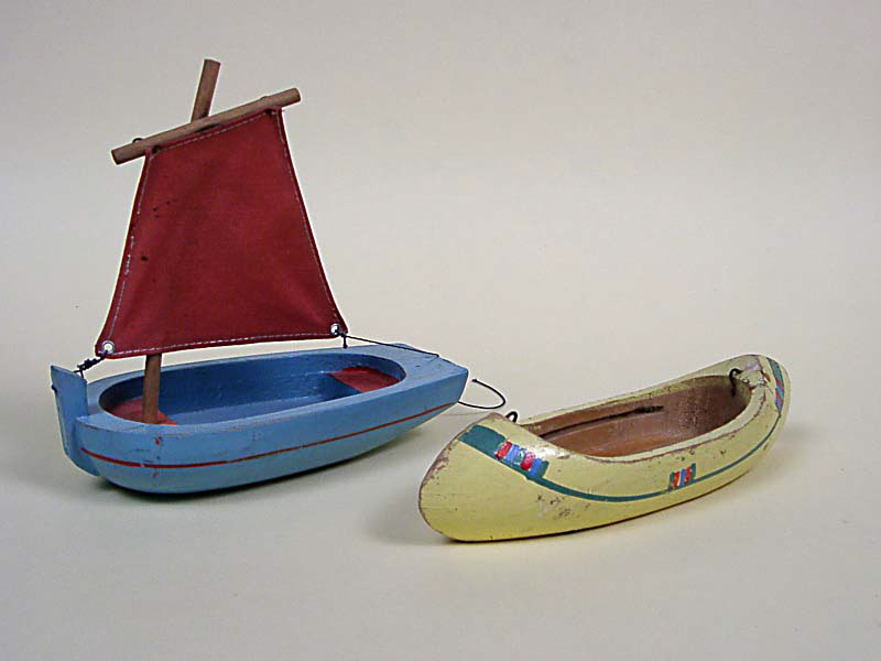 DIVERS Petit bateau de plaisance en bois peint bleu & rouge