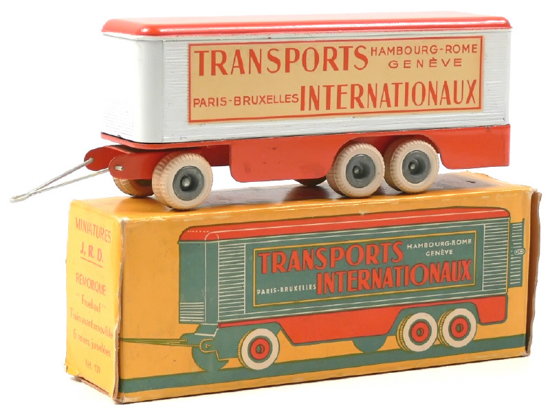 JRD (FRANCE) 129 Remorque 'TRANSPORTS INTERNATIONAUX' orange & blanc