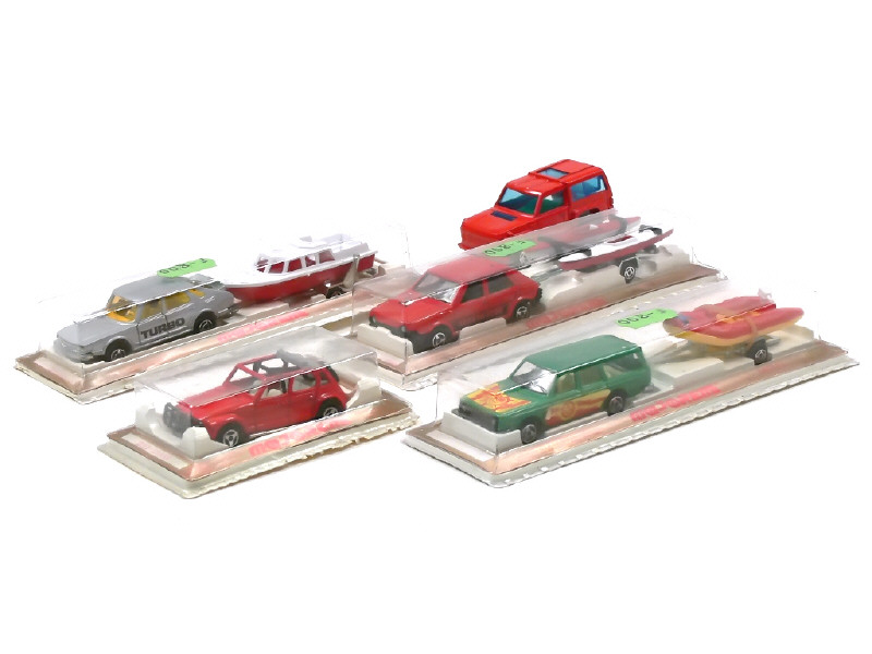 MAJORETTE (FRANCE) Ensemble de 5 voitures, 4 bateaux & 3 remorques
