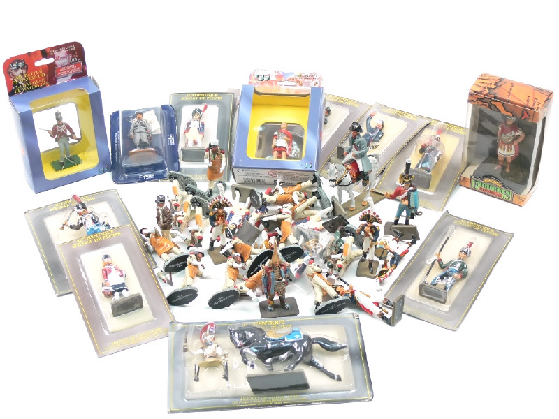 état de 'A+' à 'C' - comprend principalement : des légionnaires & des soldats du premier Empire - on y retrouve les marques : EDITIONS ATLAS, DEL PRADO, BLUE BOX & PUCHOL - 16 figurines sous blister jamais ouvert - un exemplaire en plastique - quelques manques & parties cassées