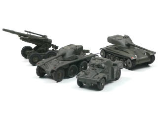 DINKY TOYS (FRANCE) Ensemble de 3 véhicules militaires & un canon kaki