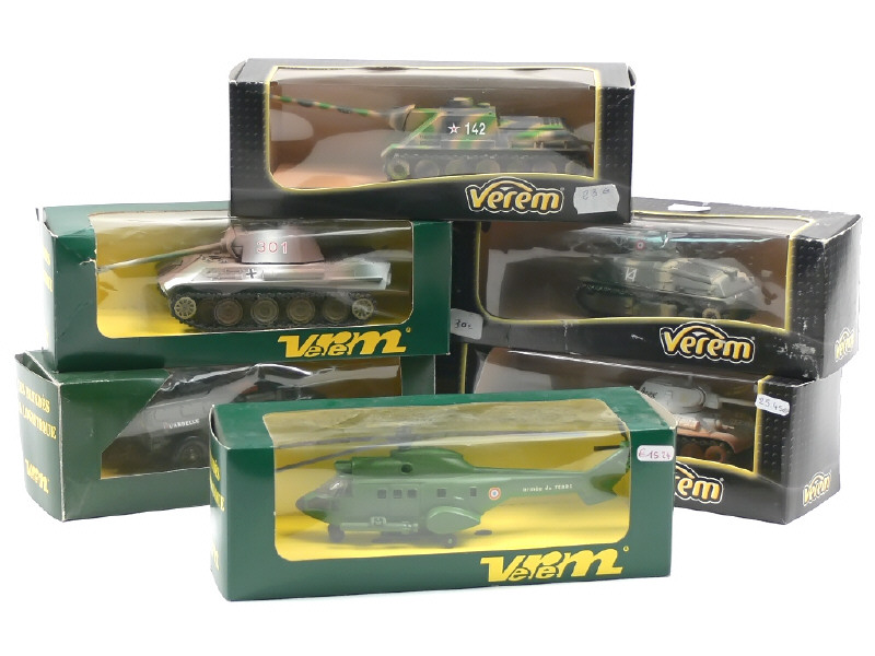 VEREM (FRANCE) Ensemble de 5 véhicules militaires & un hélicoptère