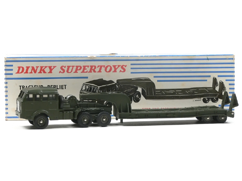 DINKY TOYS (FRANCE) 890 BERLIET Transport de char (version avec jantes concaves & pneus de la remorque 'DUNLOP') kaki