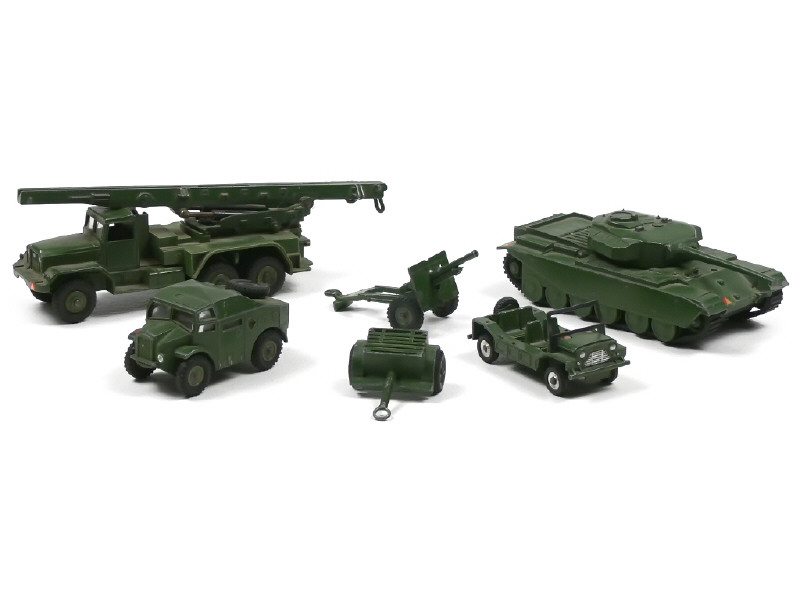 DINKY TOYS (GB) Ensemble de 4 véhicules militaires, une remorque & un canon