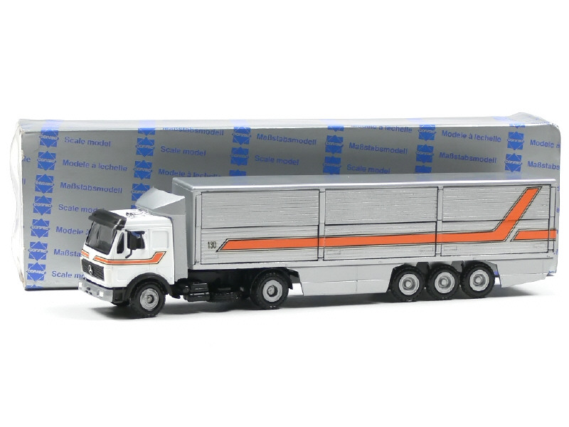 CONRAD (ALLEMAGNE) 3029 MERCEDES Semi-remorque avec portes & auvents latéraux blanc & gris métal