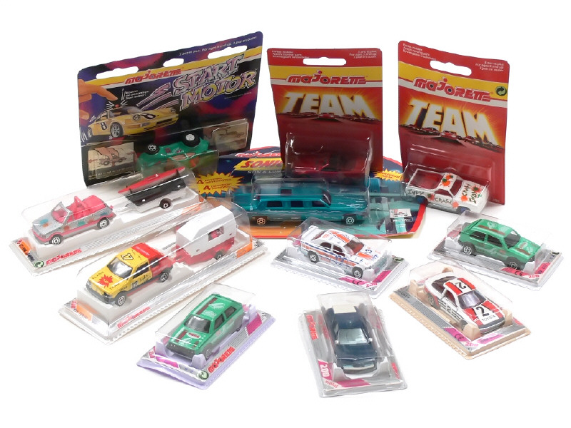 MAJORETTE (FRANCE) Ensemble de 11 véhicules, un van & une remorque avec canot