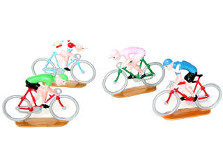 comprend 4 cyclistes dont un maillot vert & un maillot rose - version tout métal - sur socle