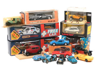 états de 'A' à 'E' - miniatures reproduisant notamment les modèles : PORSCHE, CHEVROLET, AUDI, VOLKSWAGEN, RENAULT, BUGATTI, PANHARD, CITROEN & OPEL - on y retrouve notamment les marques : CB TOYS, LUSO TOYS, ELIGOR, J.M.K, MATCHBOX, VEREM, TOMTE & FRANKLIN MINT - avec manques
