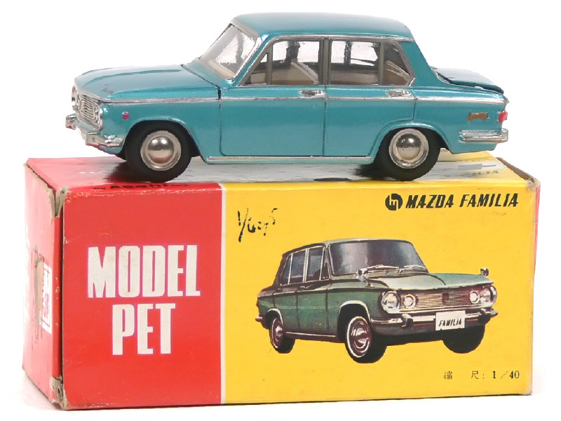 ASAHI-ATC MODEL PET (JAPON) 30 MAZDA FAMILIA 1964 bleu métal, intérieur crème