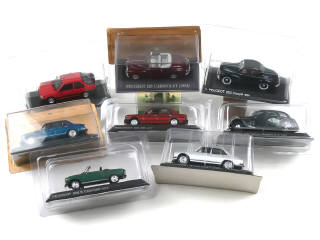 modèles vendus en kiosque - miniatures reproduisant notamment les modèles : 203, 204, 309, 402, 404, 405 & 504 - 3 boîtes en état 'd'
