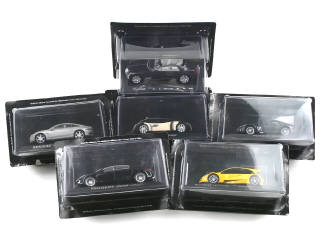 véhicules vendus en kiosque - miniatures reproduisant les modèles : ALPINE, CADILLAC, CHRYSLER, CITROEN, JAGUAR, MERCEDES (500SE & 320E), PEUGEOT, RENAULT & VOLKSWAGEN - une voiture de la marque ELIGOR - une boîte en état 'c'