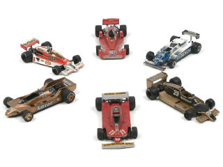 miniatures reproduisant notamment les modèles : ARROWS (2 exemplaires), COYOTE, FERRARI & Mc LAREN - on y retrouve les marques : PRECISION MINIATURES, TENARIV & WESTERN MODELS - quelques petits manques - carrosseries poussiéreuses