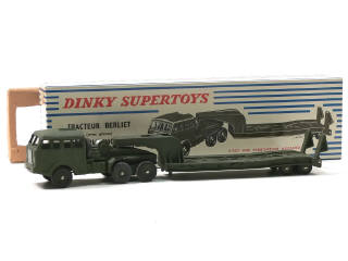 DINKY TOYS (FRANCE) 890 BERLIET Transport de char (version avec jantes du tracteur concaves & de la remorque convexes) kaki
