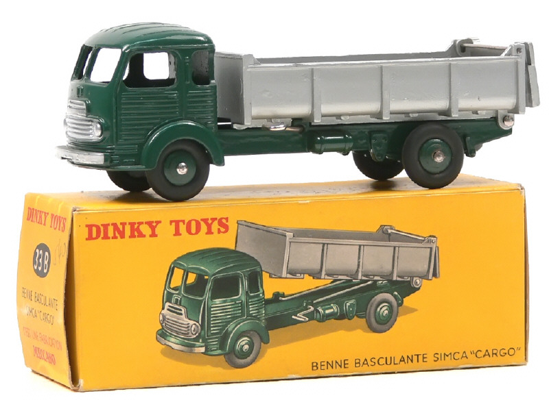 DINKY TOYS (FRANCE) 33B SIMCA CARGO Benne basculante vert foncé, benne gris métal (intérieur strié)