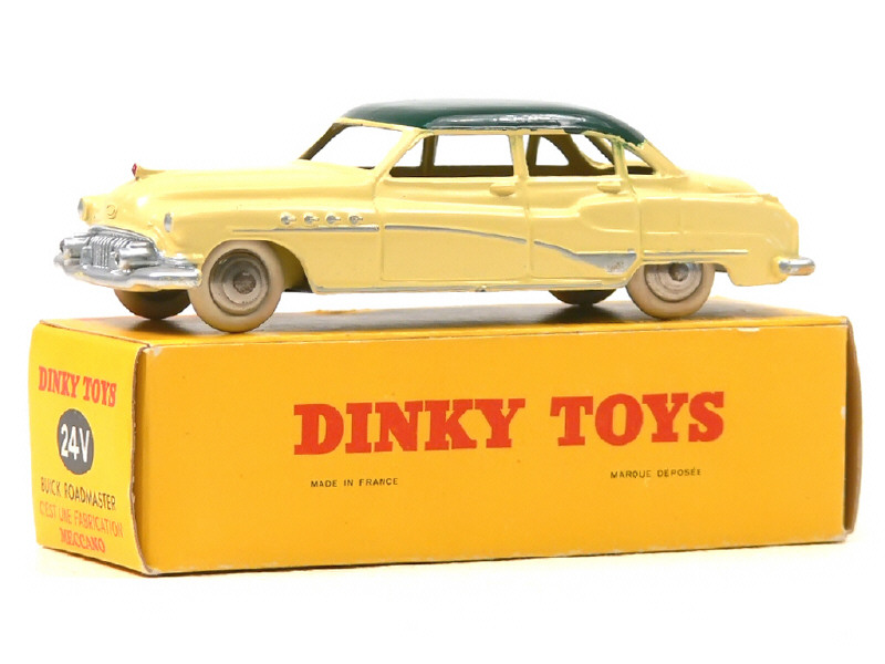 DINKY TOYS (FRANCE) 24V BUICK ROADMASTER (version avec intérieur de toit quadrillé & jantes chromées) jaune paille, toit vert