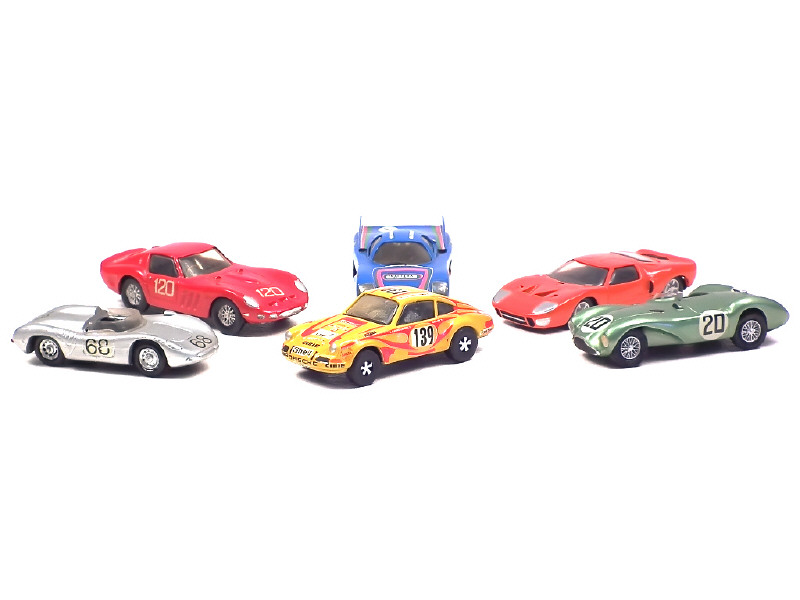réalisation en métal - kit monté - miniatures reproduisant notamment les modèles : PORSCHE, FERRARI & FORD - petits manques