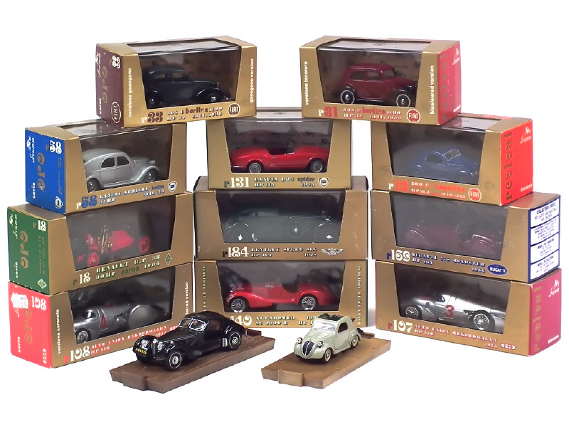 miniatures reproduisant notamment les modèles : AUTO UNION, GORDON BENNET, FIAT, BUGATTI, RENAULT, LANCIA, BENTLEY & ALFA ROMEO
