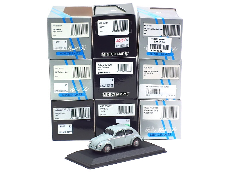 miniatures reproduisant les modèles : VOLKSWAGEN (SCIROCCO, POLO, LUPO, 1200, KARMANN, fourgon tôlé, COCCINELLE, CONCEPT CAR cabriolet) & SAAB 640