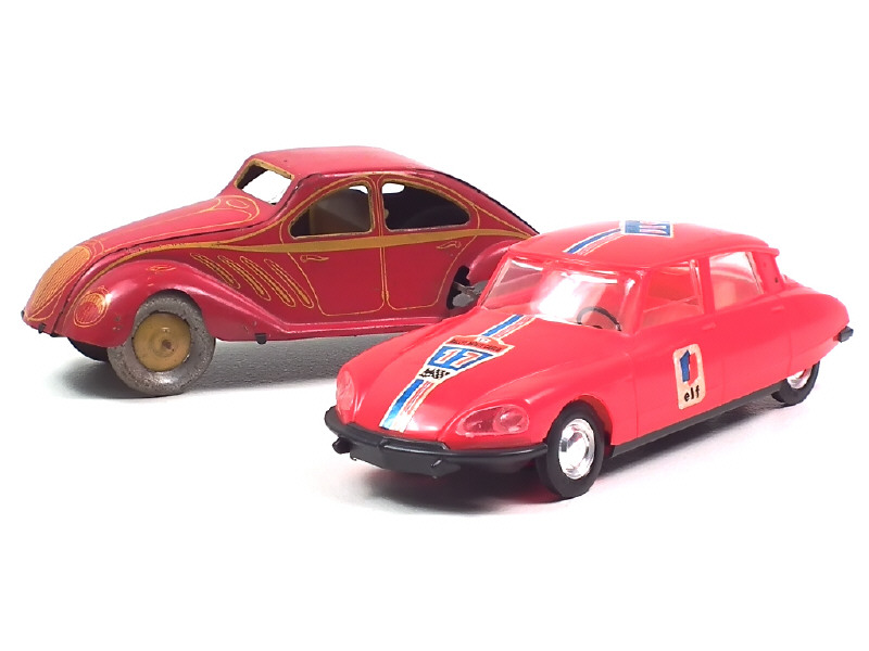 longueur 24,5 cm - moteur à ressort (à revoir) - avec direction - petites traces d'oxydation sur le plancher, les roues & le mécanisme