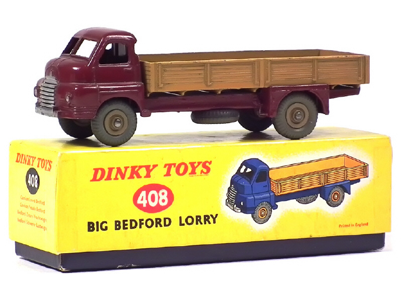 DINKY TOYS (GB) 408 BIG BEDFORD Plateau à ridelles bordeaux & ocre, jantes beiges