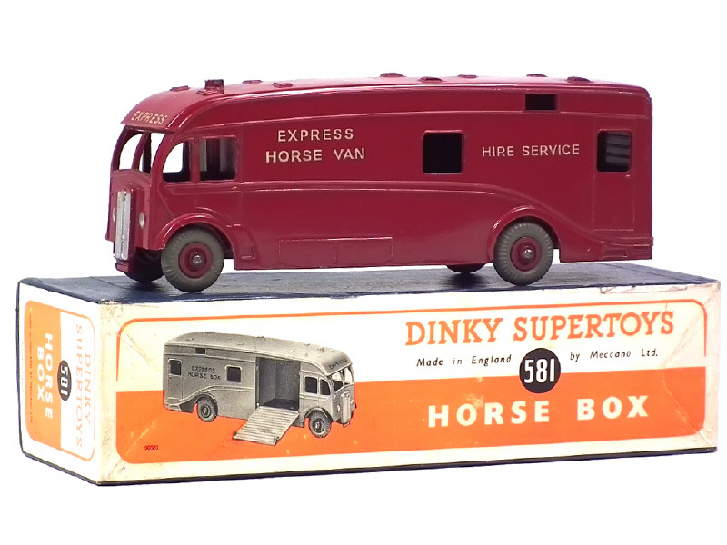 DINKY TOYS (GB) 581 HORSE BOX Transport de chevaux 'EXPRESS' bordeaux, jantes identiques