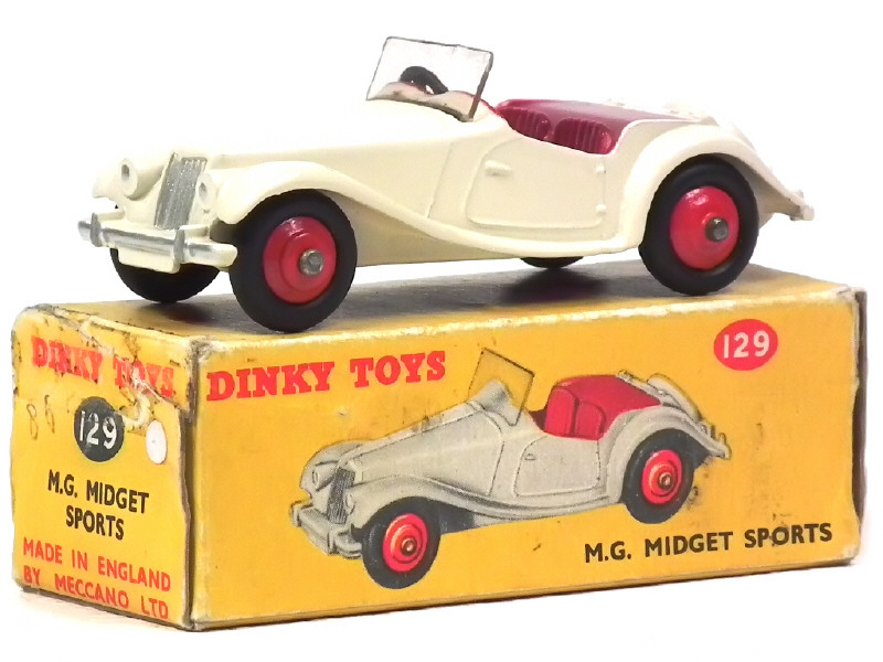 DINKY TOYS (GB) 129 MG MIDGET Sports ivoire, intérieur bordeaux, jantes rouges