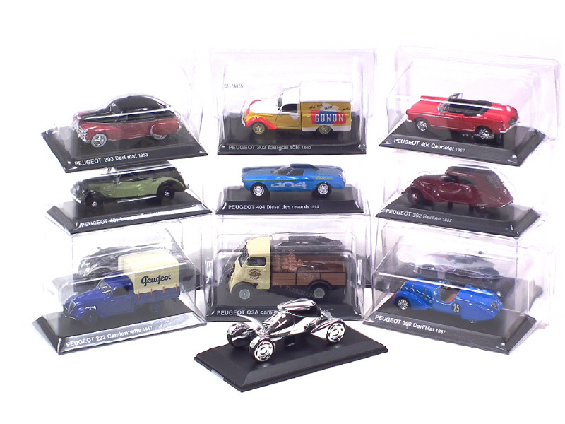 vendus en kiosque - miniatures reproduisant les modèles : PEUGEOT, FORD, PANHARD, TALBOT & CITROEN