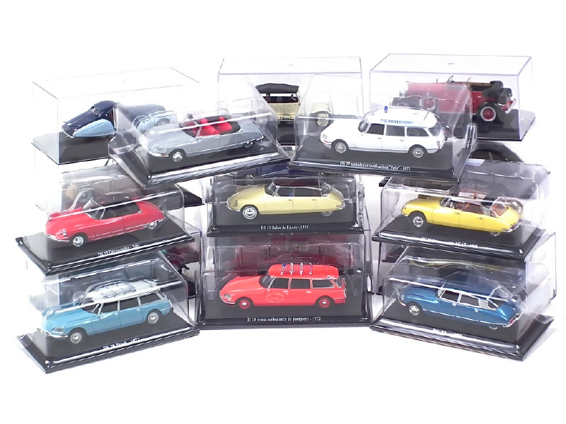 vendus en kiosque - miniatures reproduisant les modèles : CITROEN, BUGATTI, ALFA ROMEO, CADILLAC, BENTLEY, DELAHAYE, DELAGE, DUESENBERG, LANCIA, ISOTTO FRASCHINI, MERCEDES, MATRA, HISPANO-SUIZA, RENAULT & TALBOT - on y retrouve notamment la marque 'EDITIONS ATLAS' - 2 boîtes en état 'c'