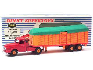 DINKY TOYS (FRANCE) 36B WILLEME Semi-remorque bâché (version avec jantes convexes) rouge & orange, bâche verte