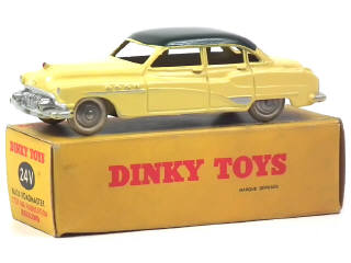 DINKY TOYS (FRANCE) 24V BUICK ROADMASTER (version avec intérieur de toit lisse & jantes chromées) jaune paille, toit vert foncé