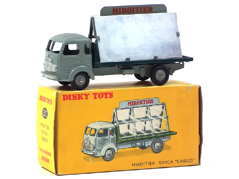 DINKY TOYS (FRANCE) 33C SIMCA CARGO Miroitier 'SAINT GOBAIN' (version avec jantes convexes) gris, plateau vert foncé & jantes grises